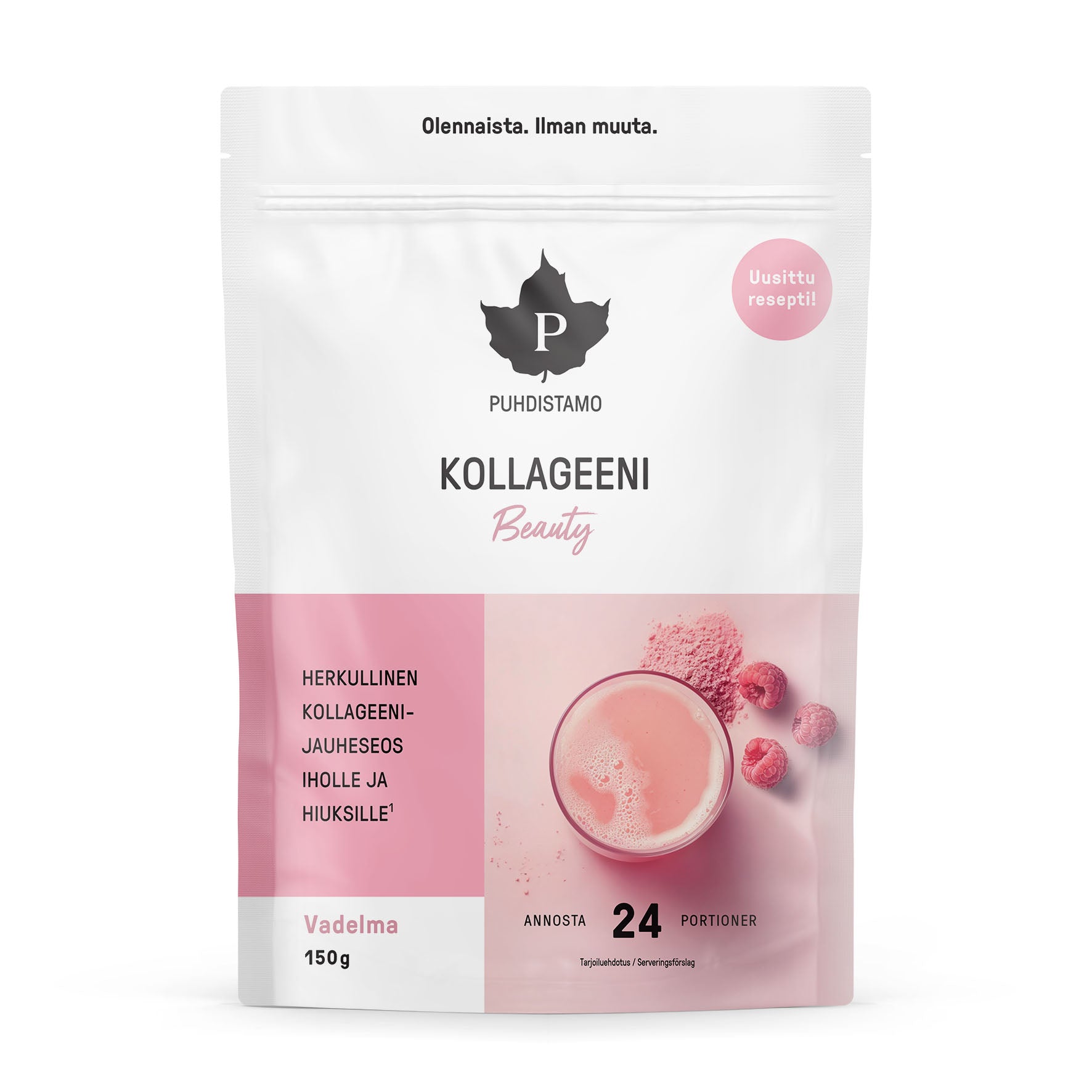 Kolagenas grožiui – tai gaivūs aviečių skonio milteliai, lengvai tirpstantis vandenyje. Sudėtyje yra aukštos kokybės VERISOL® I tipo kolageno peptidas, kuris padeda palaikyti odos sveikatą, taip pat biotinas ir vitaminas C, palaikantys normalią odos ir plaukų būklę. Vitaminas C skatina natūralią kolageno gamybą organizme ir padeda apsaugoti ląsteles nuo oksidacinio streso.