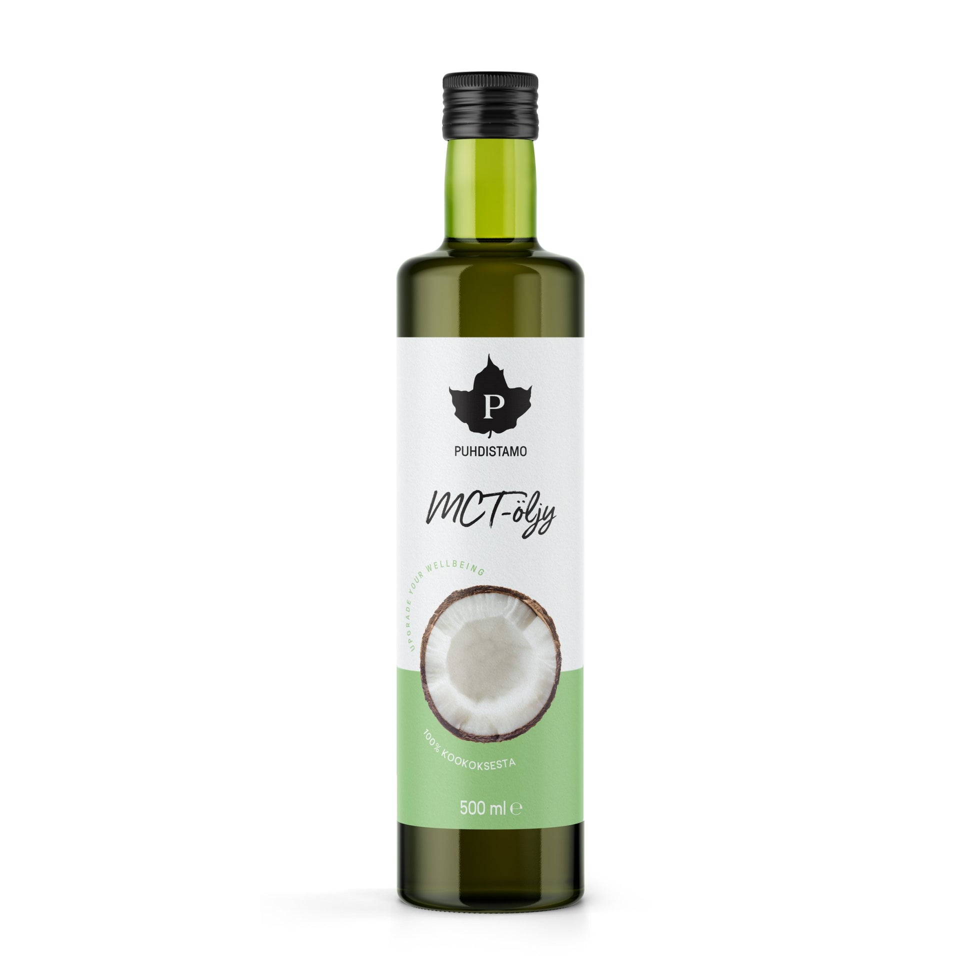 "Puhdistamo" MCT aliejus yra aukštos kokybės frakcionuotas aliejus, pagamintas iš 100% kokosų aliejaus, kurio sudėtyje yra vidutinės grandinės trigliceridų (t.y. kaprilo rūgšties (C8) ir dekano rūgšties (C10)).